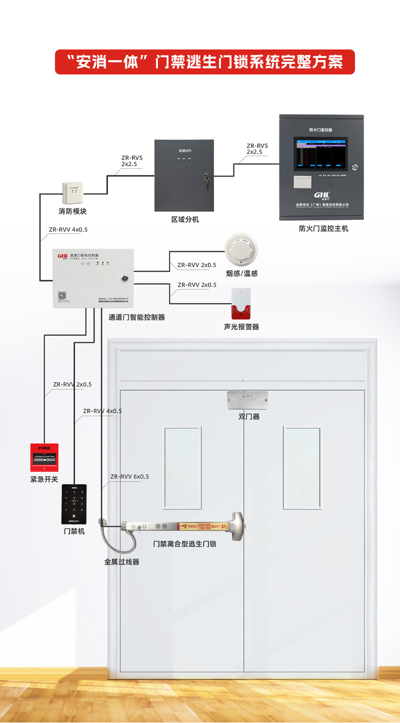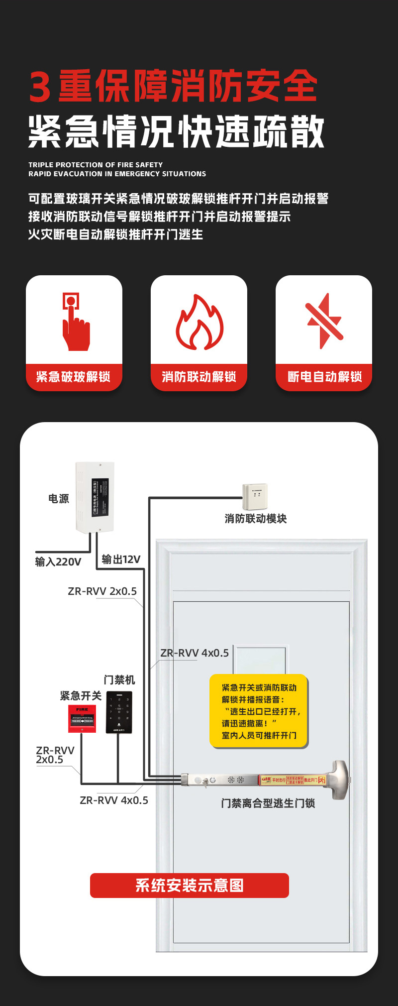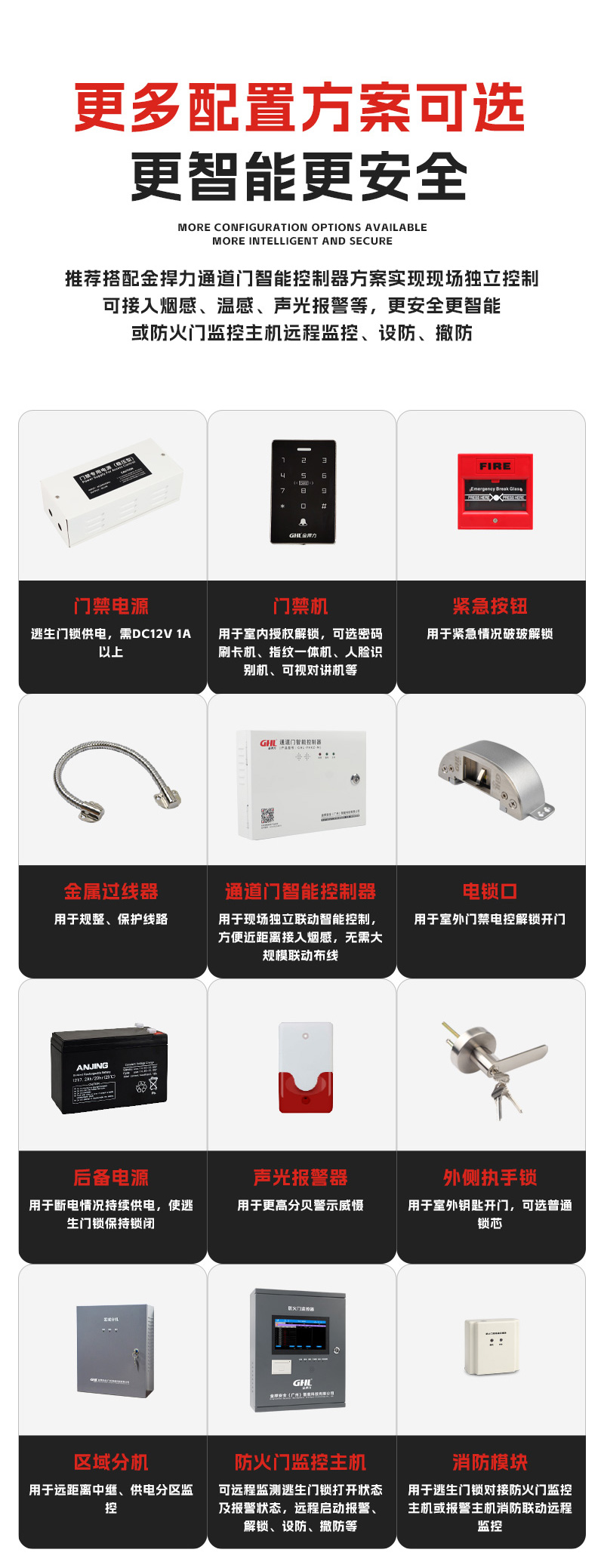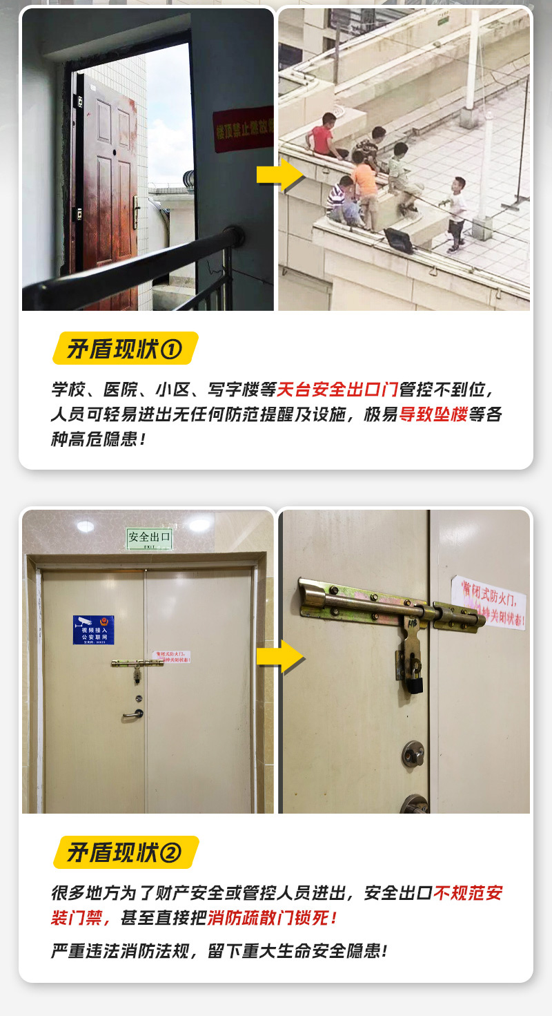 用途:商場(chǎng)、超市安全門,醫(yī)院、小區(qū)天臺(tái)門等“安消一體”門禁管控