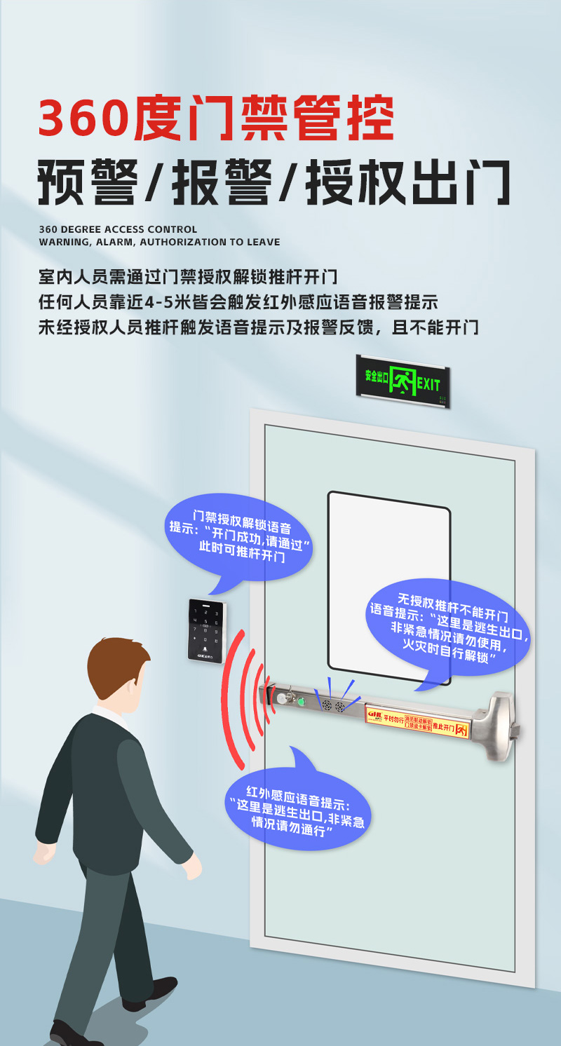 門禁離合型逃生門鎖 紅外感應(yīng)語音報(bào)警推桿鎖 消防聯(lián)動(dòng) 門未關(guān)提醒 金捍力