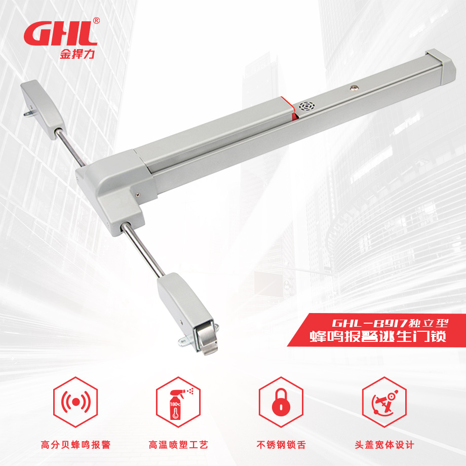 獨立型蜂鳴報警逃生門鎖 GHL-B917 天地鎖 噴塑 金捍力-蜂鳴報警逃生鎖-金捍安全官網(wǎng)-逃生門鎖-推桿鎖-自動平開門機-電動閉門器-電磁門吸-防火門控制器-“安消一體”智能門控專業(yè)廠家