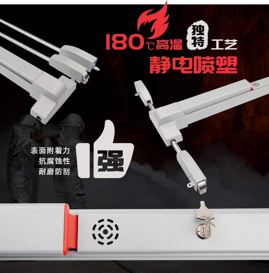金捍力GHL-B916獨立型蜂鳴報警逃生門鎖首創(chuàng)180℃高溫靜電噴塑工藝,相比于普通噴漆工藝,表面附著力更強,耐磨防刮不易脫落,防腐蝕性也更好,能夠適應(yīng)更惡劣的環(huán)境,大大增加了使用壽命。