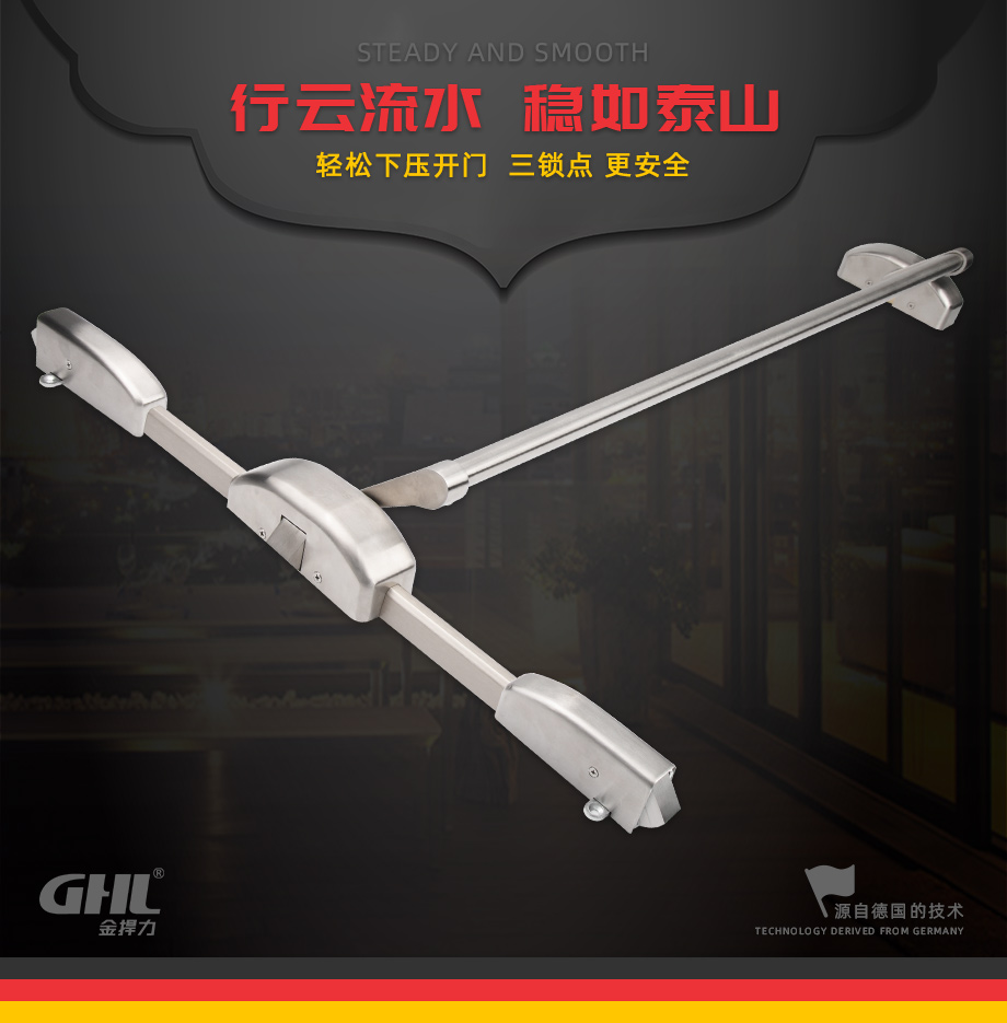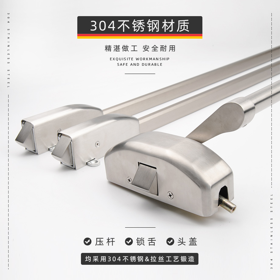 下壓式逃生門鎖 不銹鋼 三鎖點 金捍力-下壓式逃生鎖-金捍安全官網(wǎng)-逃生門鎖-推桿鎖-自動平開門機-電動閉門器-電磁門吸-防火門控制器-“安消一體”智能門控專業(yè)廠家