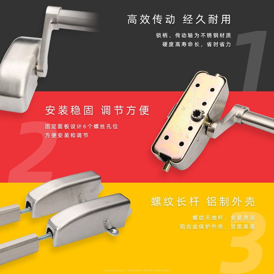 產(chǎn)品介紹:德國技術(shù),美觀高端且可靠;輕松下壓推桿即可快速開門;三鎖點,安全牢靠;全不銹鋼材質(zhì),經(jīng)久耐用。