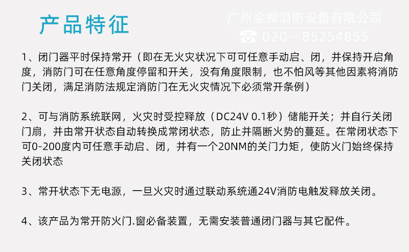 5、適用范圍:常開型防火門。