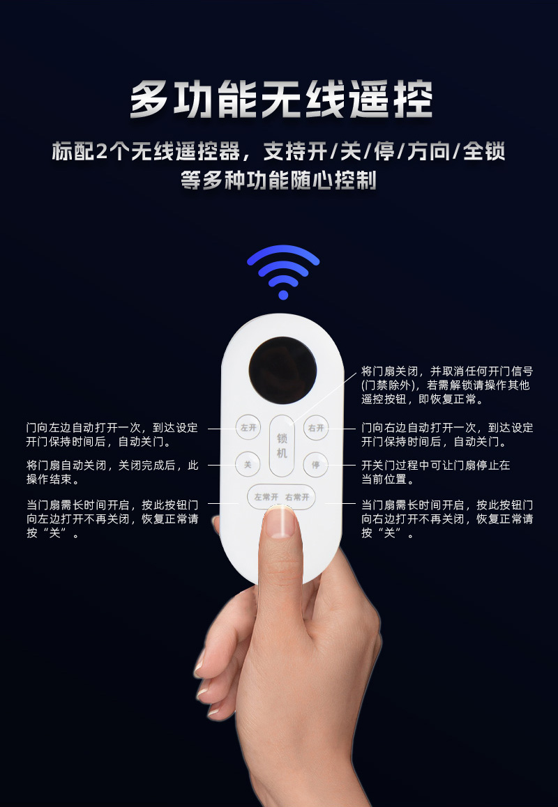 ● 多功能遙控器,支持單獨控制左開、右開、鎖外功能
