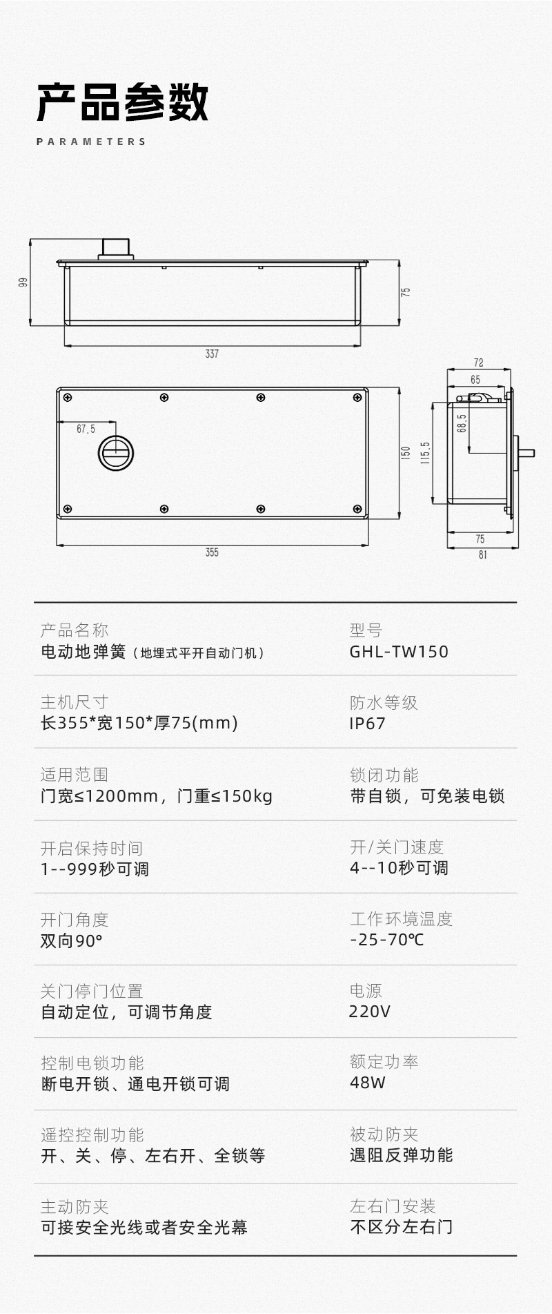 產(chǎn)品介紹:● 承重150KG,適用門寬≤ 1.2 米