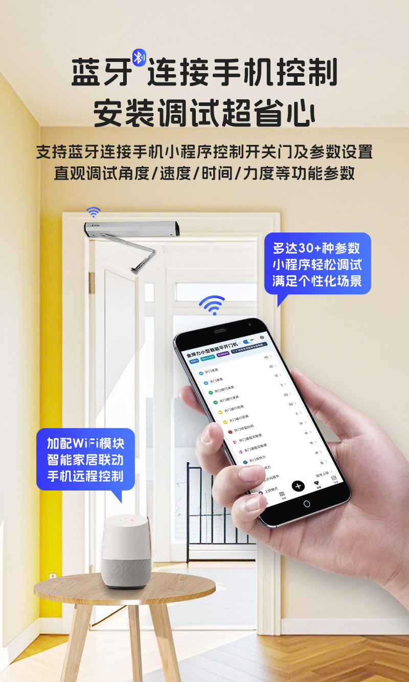 ● 支持手機藍牙連接,小程序參數(shù)調(diào)試及開關(guān)門控制