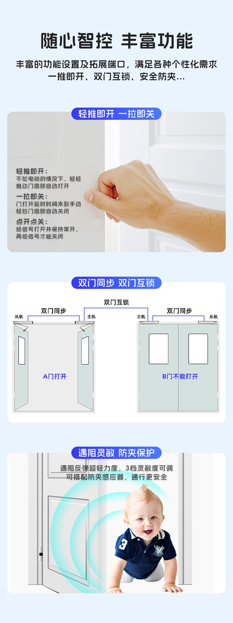● 支持多種控制模式:點開點關(guān)、推門即開、拉門即關(guān)等