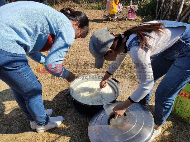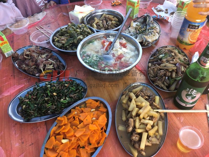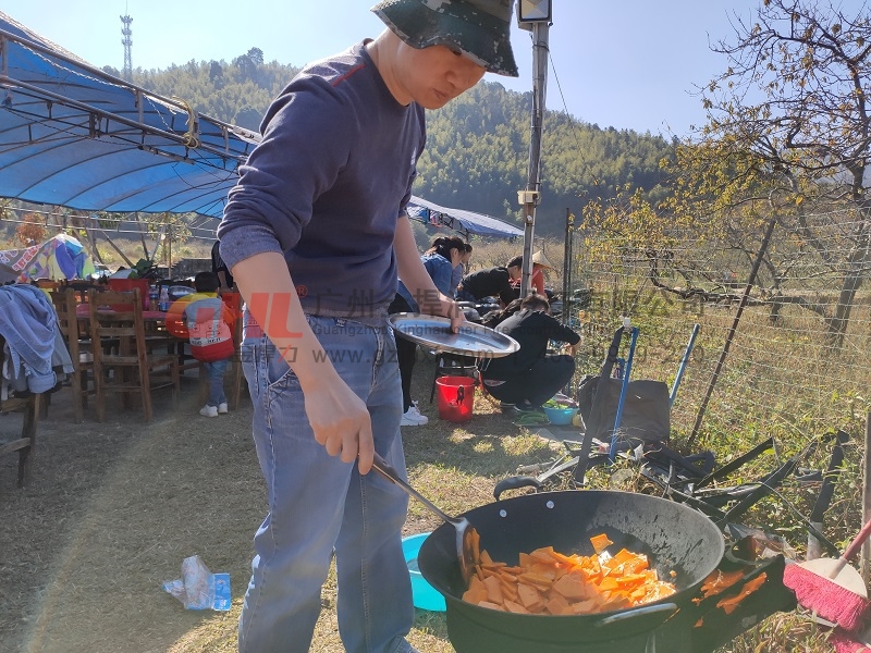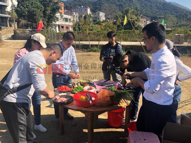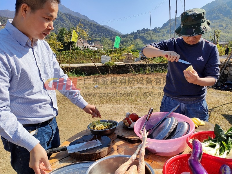 在簡(jiǎn)單整備之后,便迅速分工合作,女生撿菜洗菜、整理擺盤(pán),男生殺雞砍鴨、劈柴生火,一如金捍團(tuán)隊(duì)在工作中各司其職、默契配合。早已輕車熟路的職場(chǎng)老司機(jī),此時(shí)也秒變大廚,個(gè)個(gè)刀法精湛,金捍人就是上得了廳堂,下得了廚房!