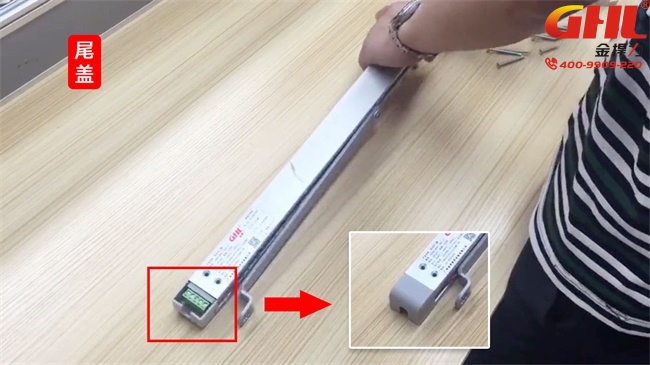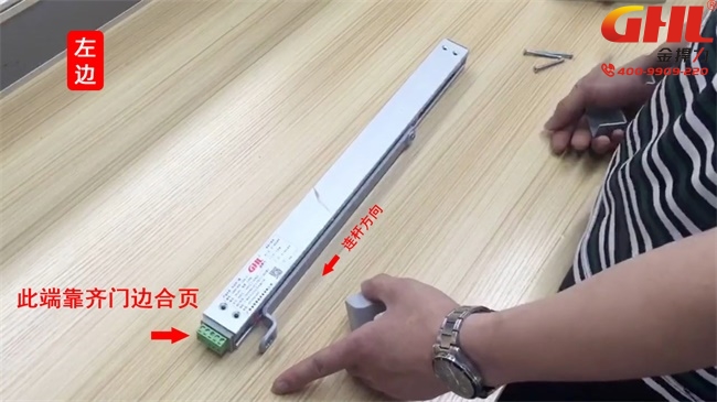 1、滑軌連桿指向的尾端,則靠齊安裝在對應(yīng)的門邊合頁。現(xiàn)在安裝為右邊。