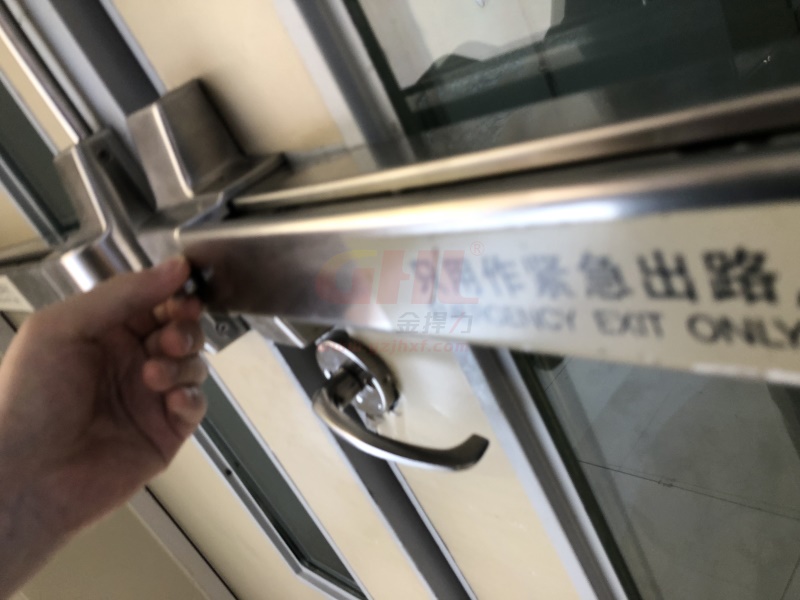 用身體某個部位一壓推杠,鎖即可打開,常用于消防通道的防火門上,實現(xiàn)發(fā)生火災(zāi)時緊急逃生功能,現(xiàn)應(yīng)用于人口密集的場所。