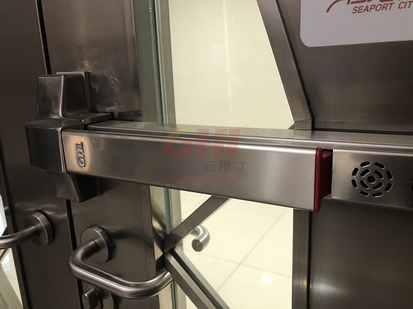 平時需要保持暢通的通道,利用電動閉門器保持防火門的常開狀態(tài),如遇緊急情況則自動或者遠(yuǎn)程操控關(guān)閉,隔絕火災(zāi)煙氣,保證人員安全。而要求常閉的防火門,非緊急情況推壓鎖杠引發(fā)語音報警提示且不能開門,需要通過門禁讀卡器、玻璃開關(guān)等設(shè)備撤銷報警并授權(quán)開門,達(dá)到控制人員出入的目的。