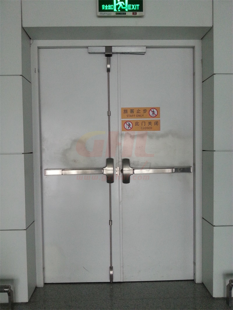 安裝北京推杠鎖后,門可以從室內(nèi)向疏散方向一推即開,適應(yīng)了開門逃生需要。室外一般不能開門,或加裝室外門鎖后用鑰匙開門,也兼顧了安防需要。因?yàn)橥聘苕i主 要安裝在EXIT安全疏散出口的防火門上,推杠鎖在材質(zhì)上也需要達(dá)到耐火性能要求,所以也常稱為防火鎖。實(shí)際上防火鎖的種類很多,也包括達(dá)到耐火性能的其他鎖具。